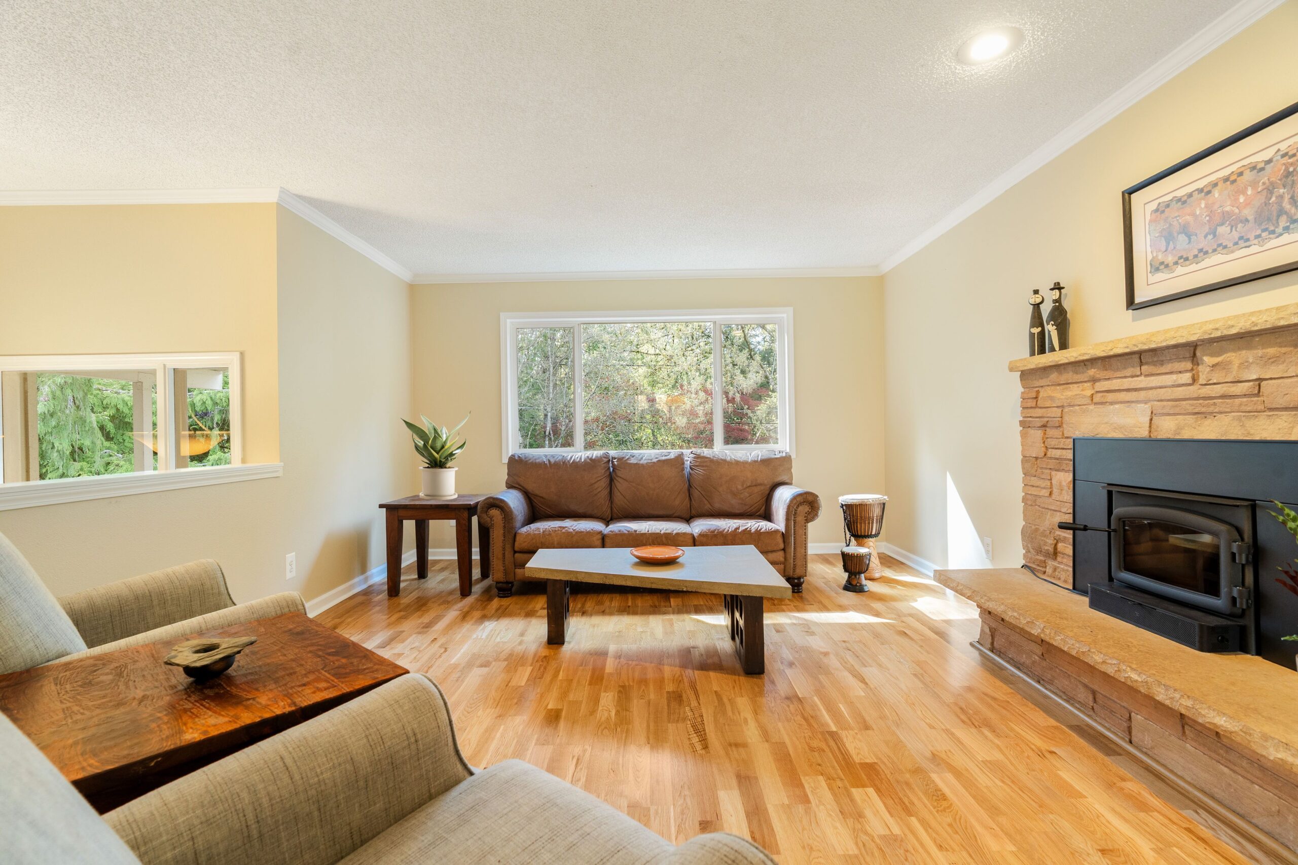This home strikes that perfect balance of comfort and connection, with natural light pouring into every thoughtfully cared-for space. The main floor flows effortlessly with a generous living room anchored by a cozy woodstove, a spacious and updated custom kitchen, a primary suite with an attached bath, double closets and direct connection to the great outdoors, plus two additional bedrooms and a second full bath. Step outside to a deck that leads to a fully fenced backyard, perfect for slow mornings, hosting friends, or growing a garden. Downstairs delivers flexibility and function with a large bonus room, junior suite with attached bath, and an additional bedroom, ideal for hobbies, guests, work, or multigenerational living.